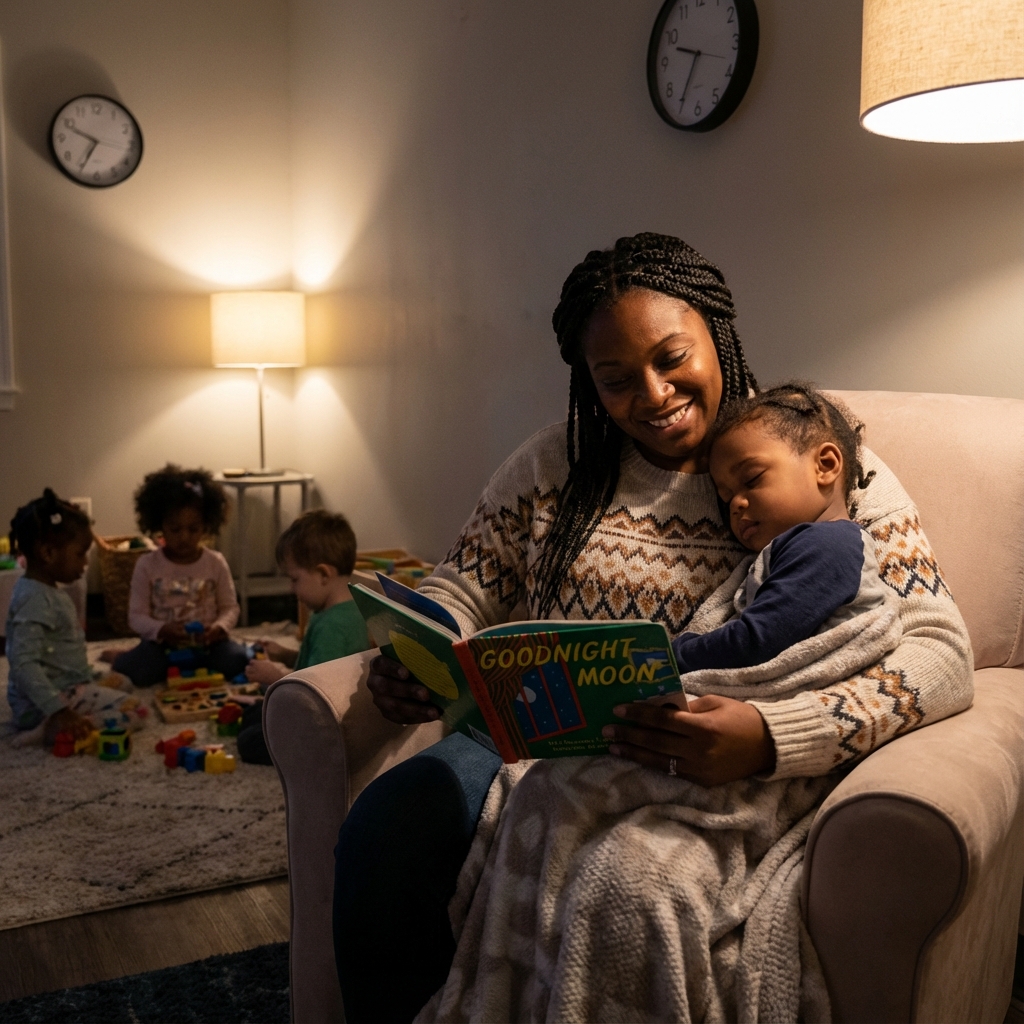 Our Evening Care program supports families with non-traditional schedules by offering a calm and nurturing space for children during late-day hours. Activities focus on creativity, relaxation, and social connection in a safe home like environment.