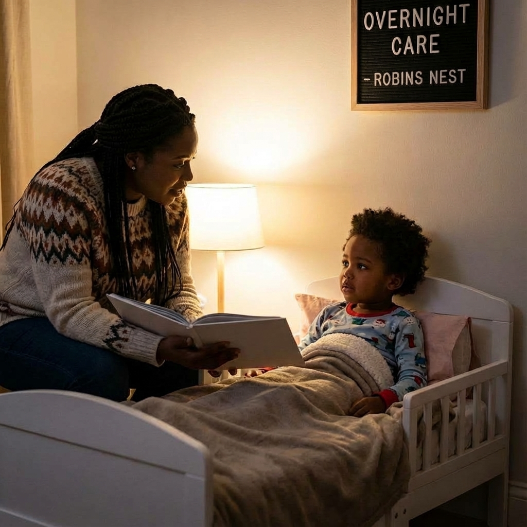 For working or traveling parents, the Robins Nest provides trusted Overnight Care that ensures comfort, safety, and continuity of routine. Children receive evening meals, bedtime transition support, and a peaceful overnight stay so parent can rest assured their child is well cared for.